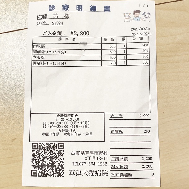 この日は再診の日ではなかったのですがみーちゃんの飲み薬がなくなってしまったため