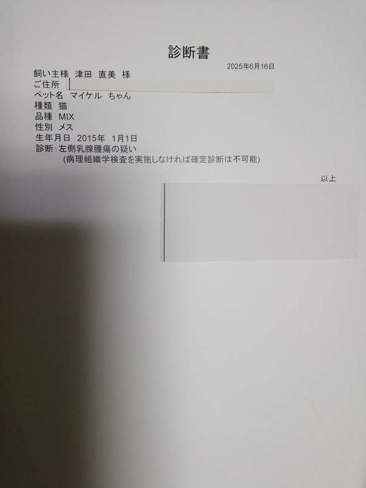 病院に連れて行く事ができず腫瘍が大きくなってしまい