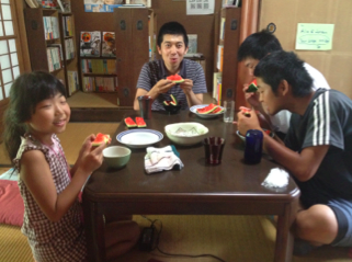 小学生から高校生までが利用しており、マンガ、児童書や実用書、小説なども揃っていて、子供たちが遊んだり、ふらりと立ち寄って自分の時間を過ごすことができるようになっています。大学生が夏休みの宿題のアドバイスをしてくれたり、一緒にスイカを食べて一息ついたりしていると、みんなまるで兄弟みたいです。