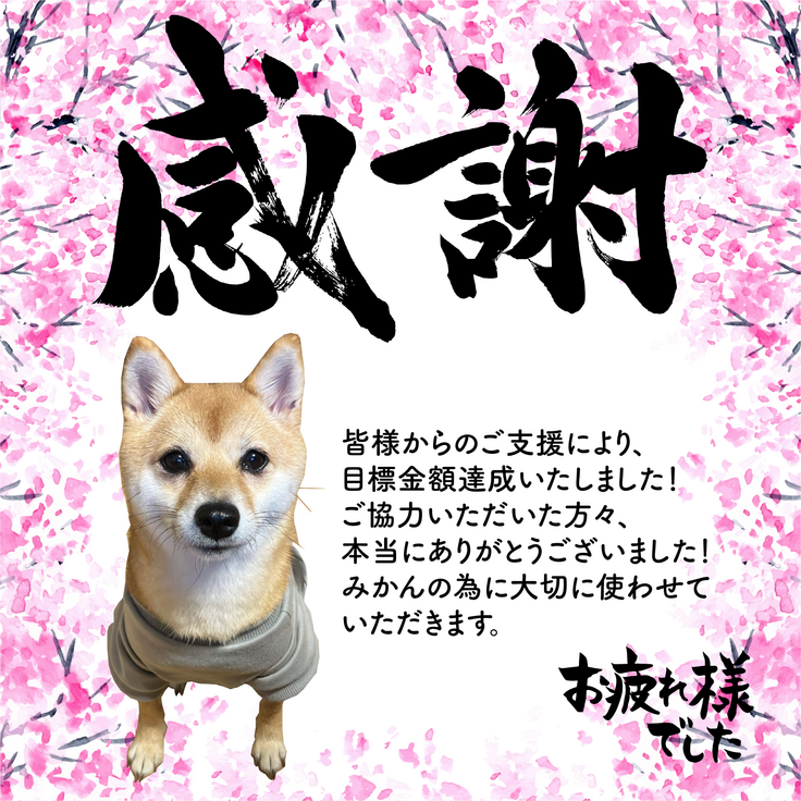 皆様からのご支援のおかげで「みかん」の手術費用の一部ご負担をお願いするプロジェクトの実施が完了しました為、終了報告をさせていただきます。
