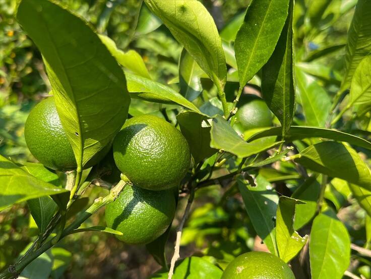 『今まで捨てていた青みかんも、鶏たちのごはんになるんだよ。』というメッセージもありますが、これらが『秋になると色づき美味しいみかんになるんだよ』とも。