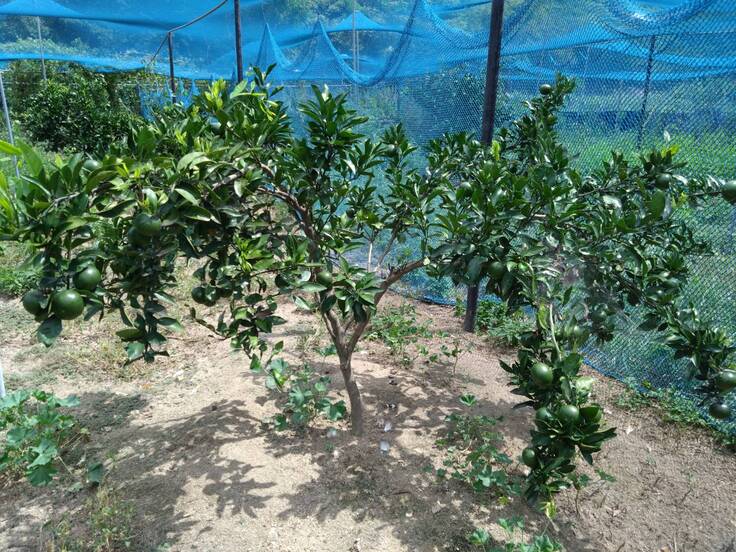 「あらっ…」多くの人に鶏舎に訪れてもらいたいという思いで、数年前に植えたみかんの木。