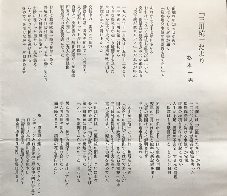 元炭鉱マン(三川坑勤務)の杉本一男さんから