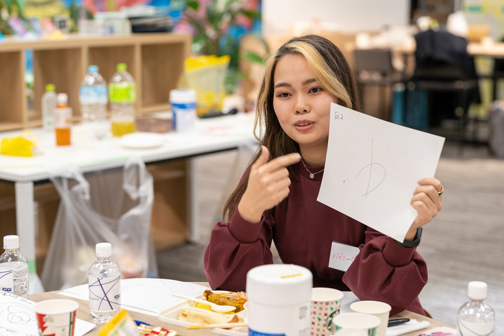 料理を題材に、味覚を食レポするゲームです。普段みなさんは”美味しい”という言葉を多用していませんか?今回のワークショップでは、甘味、塩味、酸味、苦味、辛味などをあえて言葉を使わずに表現します。異なる母語話者にも理解してもらえるように工夫を凝らして伝えるゲームです。