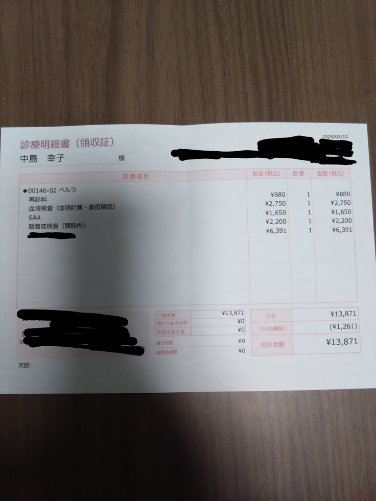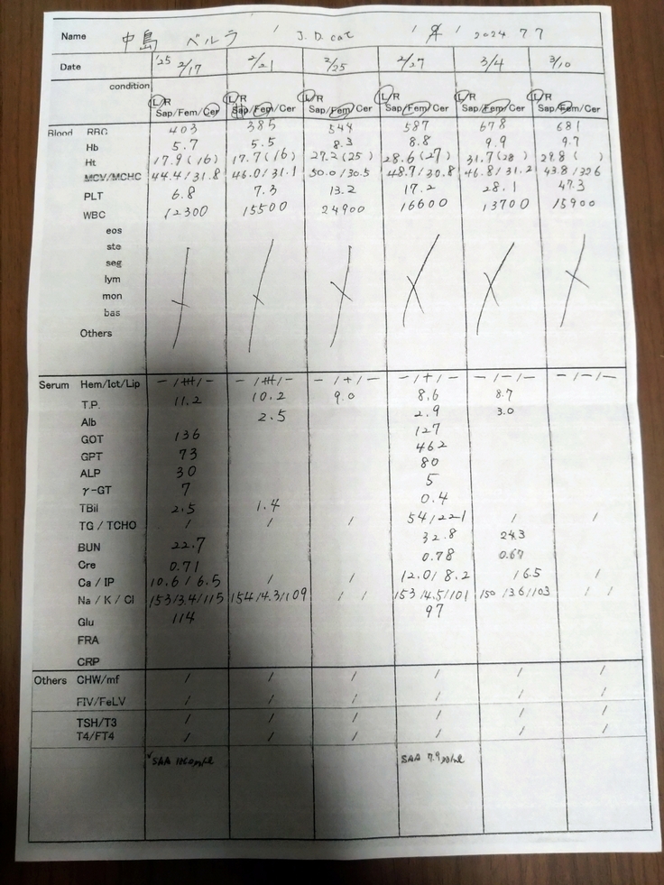 基本の採血と、念のためSAAを測ることに。そしてかすかに咳がまた出始めたことを報告。