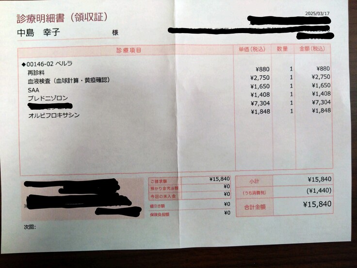 その他の検査結果より、FIPが悪さをしているとは考えられないとのこ。やはりベースにこの病気があるのが本当に怖いけど、FIPのお薬は確実に効果が出ているとのことで、一安心です。