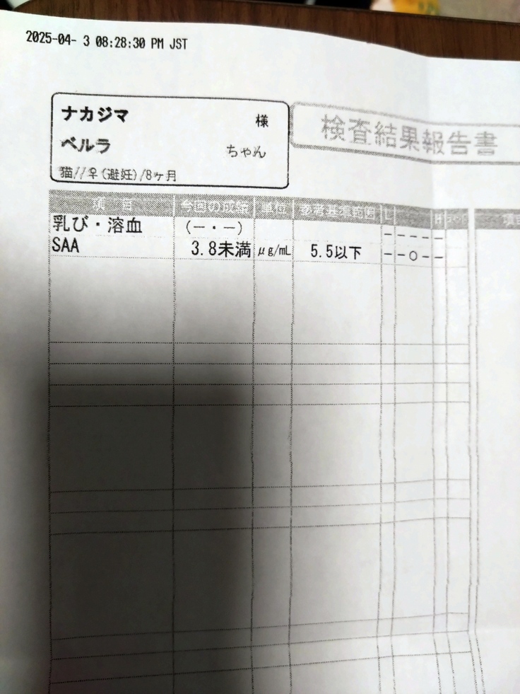 先日の検診で測っていたSAAの検査結果が出て、病院より電話がありました。