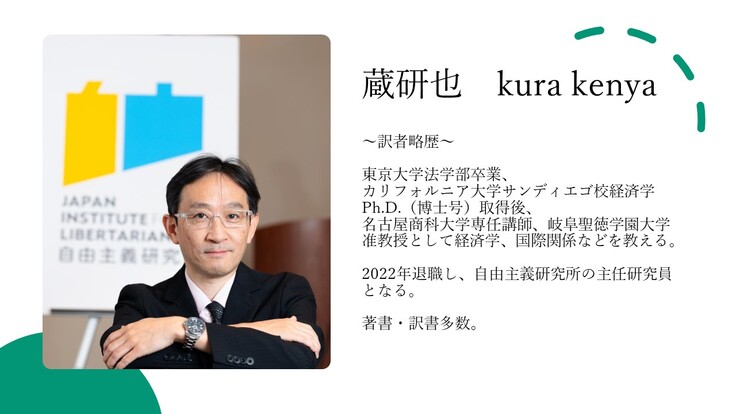 蔵は自由主義研究所の主任研究員であり、多くの著作があり、複数の海外の書籍の翻訳出版の実績もあります。