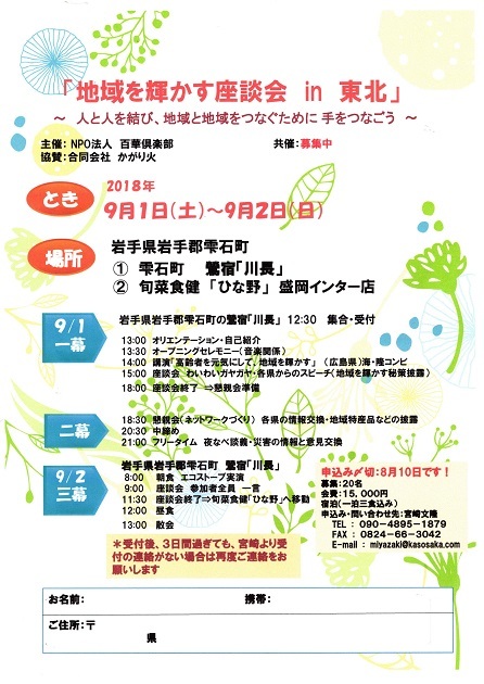 9月01日(土) 13:00 「地域を輝かす座談会in東北(岩手県盛岡市)」スタート
