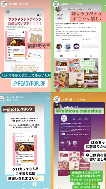 ●MIMOSAのInstagramストーリーアーカイブにて、支援者様のお名前を投稿・永久保存させていただきます!