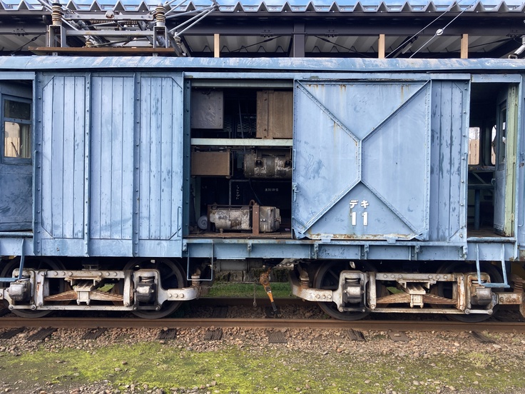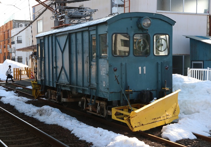 その後、南越線で車両入れ替えをこなしましたが、1979年に運転台部分の鋼体化、電動機増設などの大改造を受けて電気機関車に車種変更。車番も新たに「デキ11」となり、軌道の除雪を担いました。