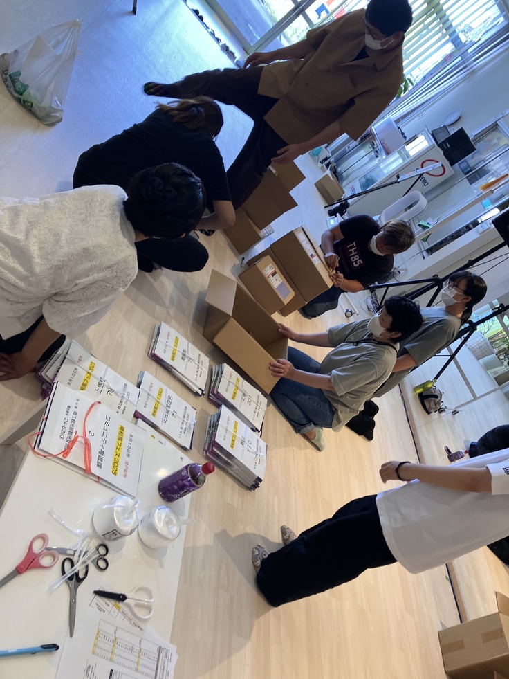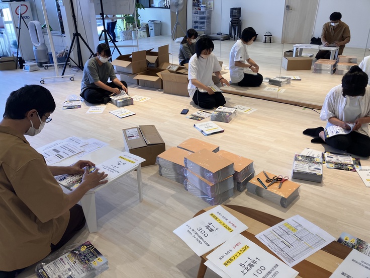 みんなで2万枚のチラシの仕分けをしました。