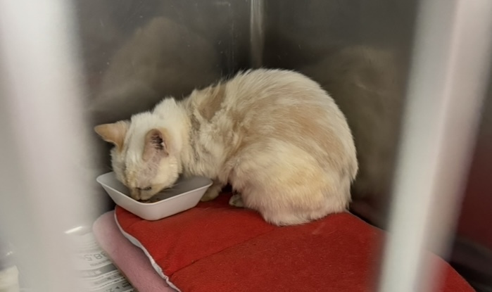 ねこひげハウスの施設での継続治療をすぐに検討しましたが、隔離スペースが足りず、11月に入りようやく連れ帰ることができました。