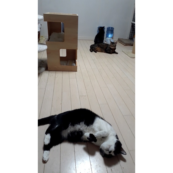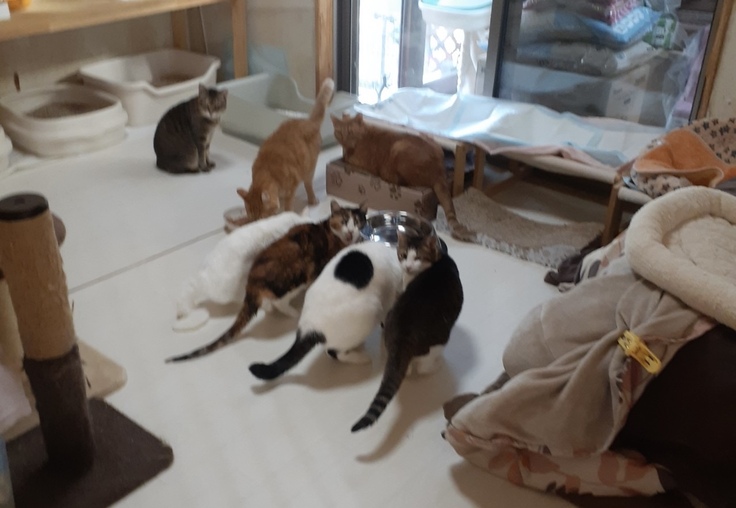チームZEROシェルターでは、各部屋の猫たちは仲が良く、猫同士の喧嘩などは見受けられません。緊張もだいぶ和らいできて、リラックスしている姿をよく見かけるようになりました。