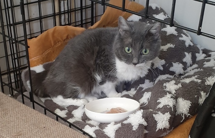 グレーの色合いが可愛らしいメルモちゃんは、お口の痛みで食が落ちてしまったため、先日全抜歯の手術を行いました。痛みもなくなり、ご飯もよく食べるようになりました。