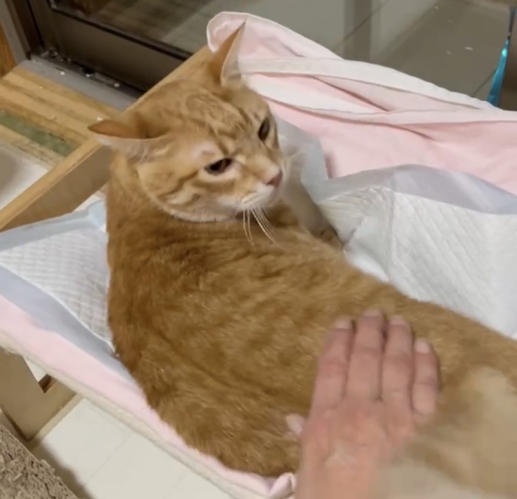 そっくり怖がり茶トラくんの3匹のうち、ぴろくんは、お部屋に入ると一目散に姿を隠していましたが、最近、恐る恐るですが撫でさせてくれるようになりました。