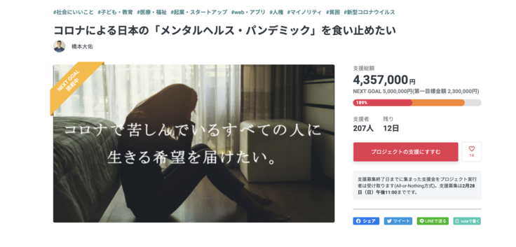 拡散の際には、本プロジェクトのページ (以下URL、または以下画像の右下にあるSNSシェアボタンより) をシェアいただけますと幸いです。
