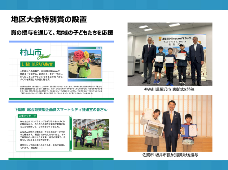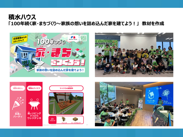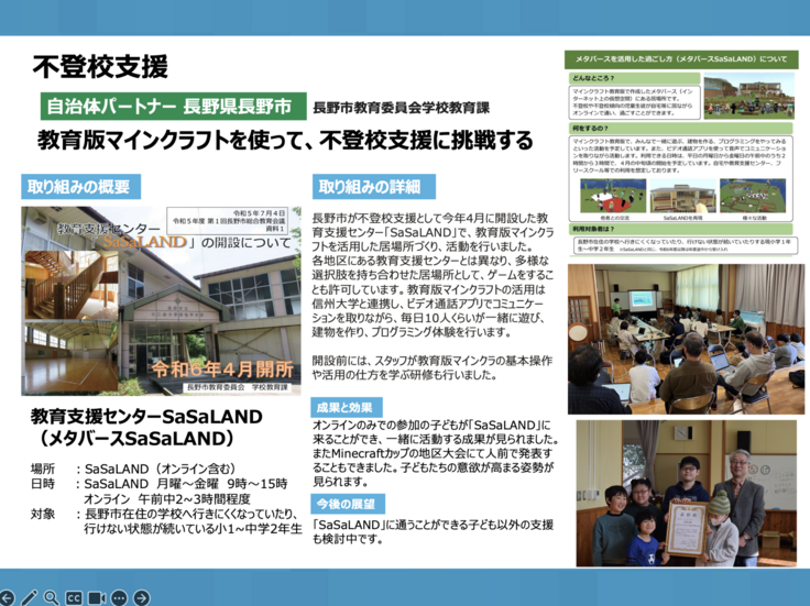 老朽化した公園の遊具を新しくするため、子どもたちがマイクラを用いてアイデア出しを行った事例や、次世代育成のための教育サポートとして全小中学校でマイクラの導入が決まった自治体のお話も。