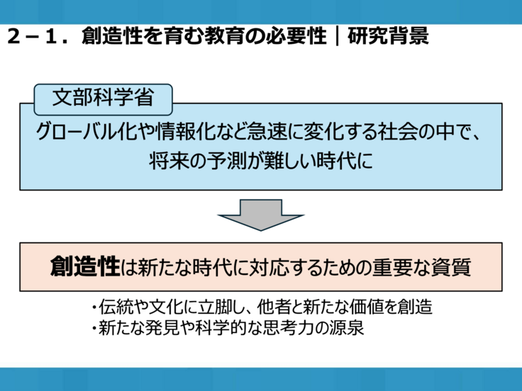 創造性は新たな時代に対応するための重要な力である、ということで、「創造的態度」に関する調査を行いました。
