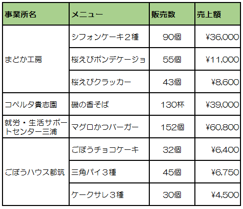 その結果、あいにくの雨にもかかわらず、どの事業所も普段の売り上げを大