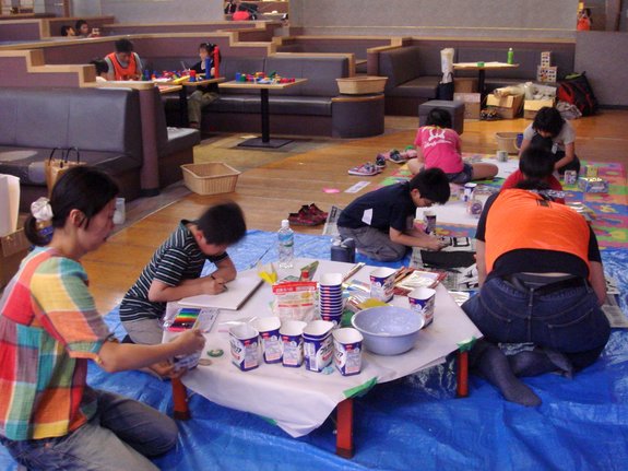 はじめは石巻市外からのボランティアを中心に運営されていた「みんなの場」は、回を重ねるごとに仮設団地に住む大人たちにも認知され、遊びに来てくれる子どものお母さんたちも力を貸してくれるようになりました。冬には、お母さんたちはスタッフとして働くようになり、地元に密着した運営になりました。