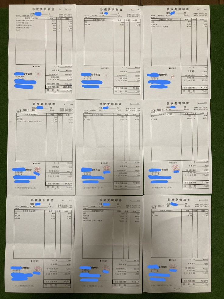 ページ上に掲載している診断書や診療明細書などの資料は全て動物病院から掲載の許諾を得ております。