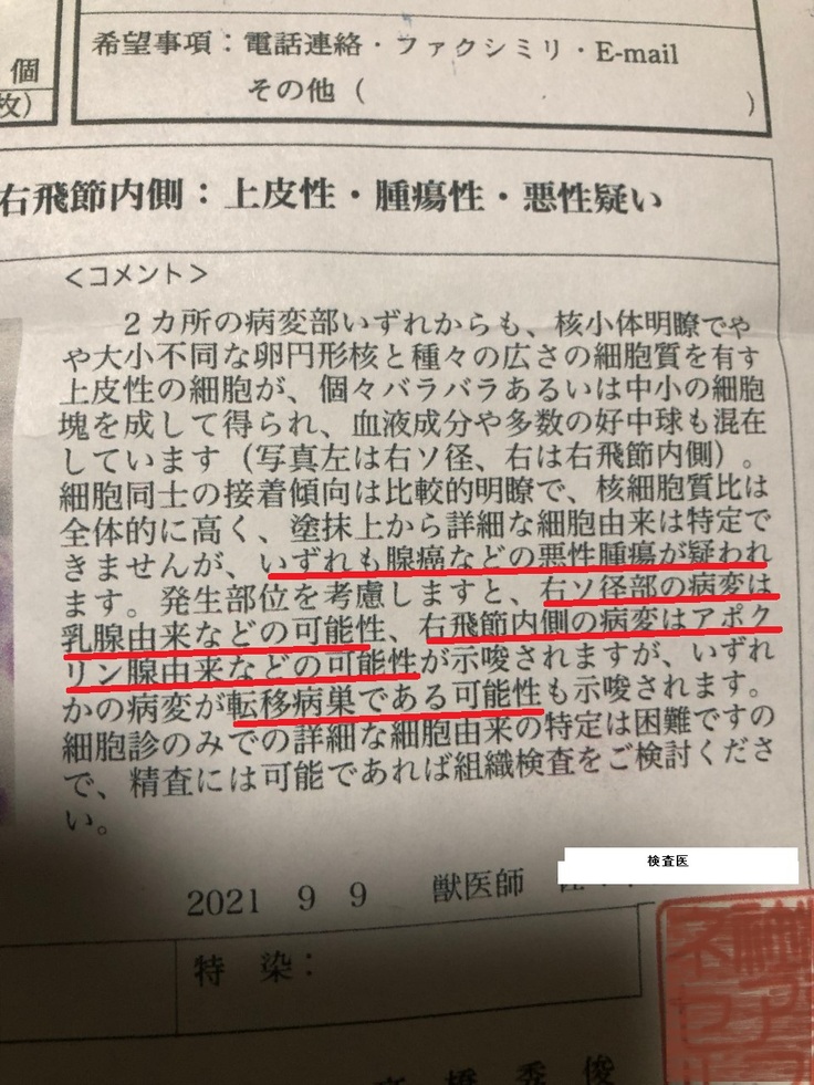 前回のココアの診察時に、病院のご配慮でミントの担当医だった腫瘍科の先生とお話をさせていただく機会をいただきました。