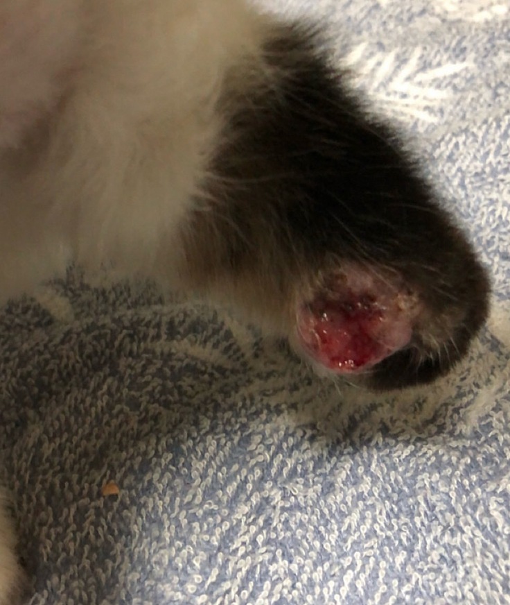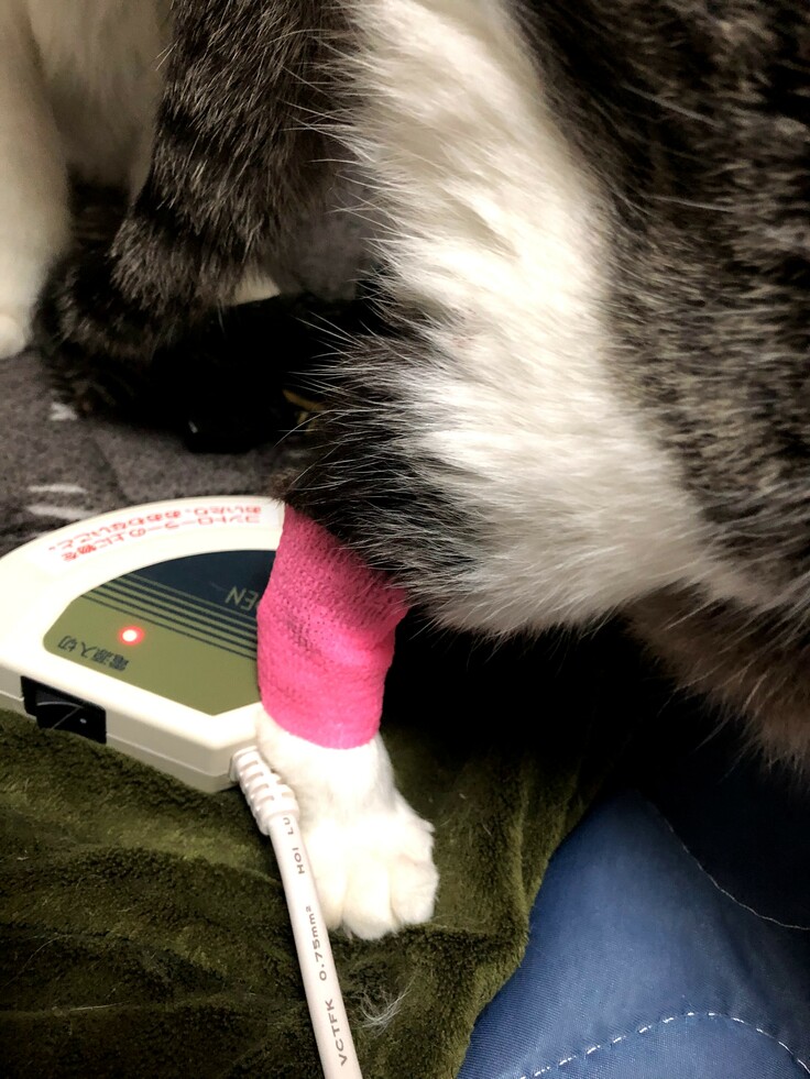セカンドオピニオン時に先生が脚に包帯を巻いてもOKと仰ったので毎日消毒後にガーゼと包帯を取り替えてあげてます。