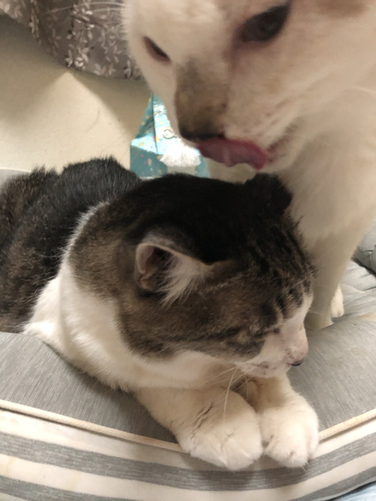 病院から戻り冷たくなったるるちゃんをずっと舐めていたのが、みんちゃんでした。