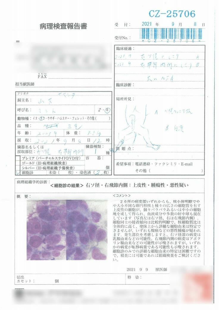 分子標的薬が少しでも腫瘍に効いて、みんちゃんが辛い思いをせずに穏やかに暮らせるよう、後悔のないようできる限りのことをしてあげたいと思っています。