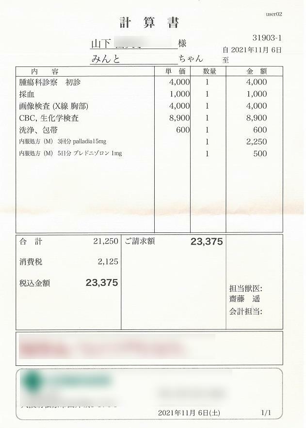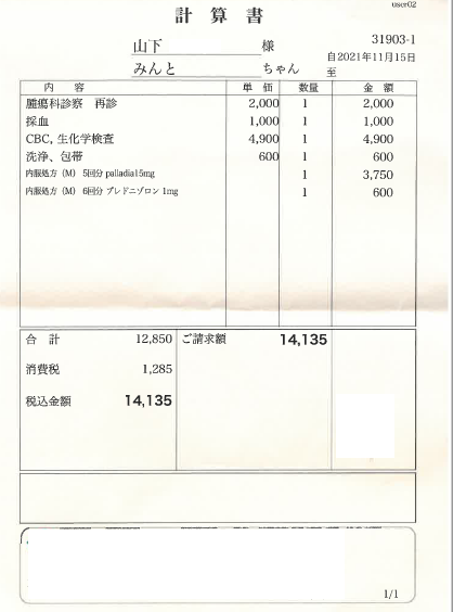 愛猫ミントの治療費(18歳 メス 雑種) 腫瘍科専門獣医によるセカンドオピニオン 毎週の通院、分子標的薬の処方、定期的な血液検査 サプリメント代、療法食代、消耗品代など