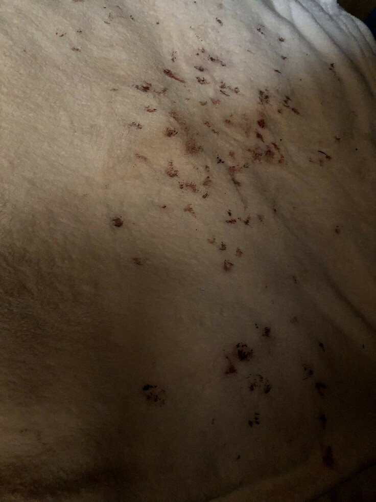 脚の出血が日に日に酷くなりシーツが数時間でこのようになります。