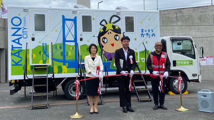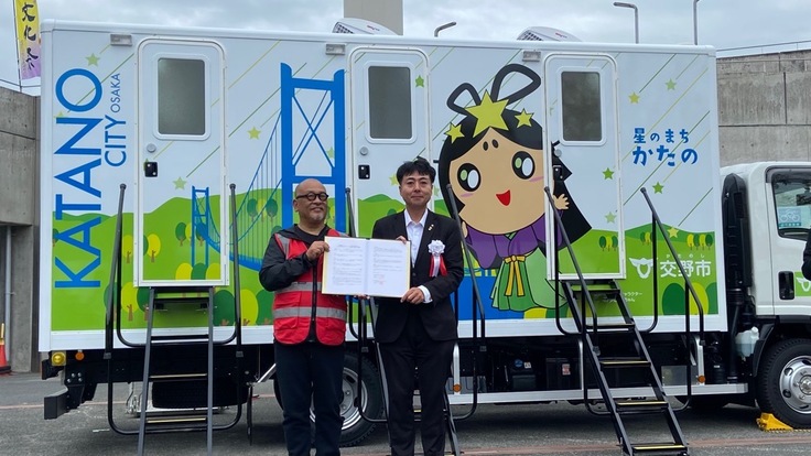 10月26日(土)交野市立総合体育施設にて、トイレトラックのお披露目式と感謝状の贈呈式を実施しました。