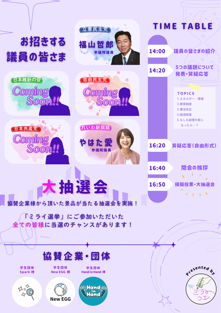 今回のミライ選挙は、若者をはじめ、幅広い世代の皆様にご参加いただけるイベントです。この活動報告をご覧いただいた皆様も、ぜひご参加いただければ幸いです。