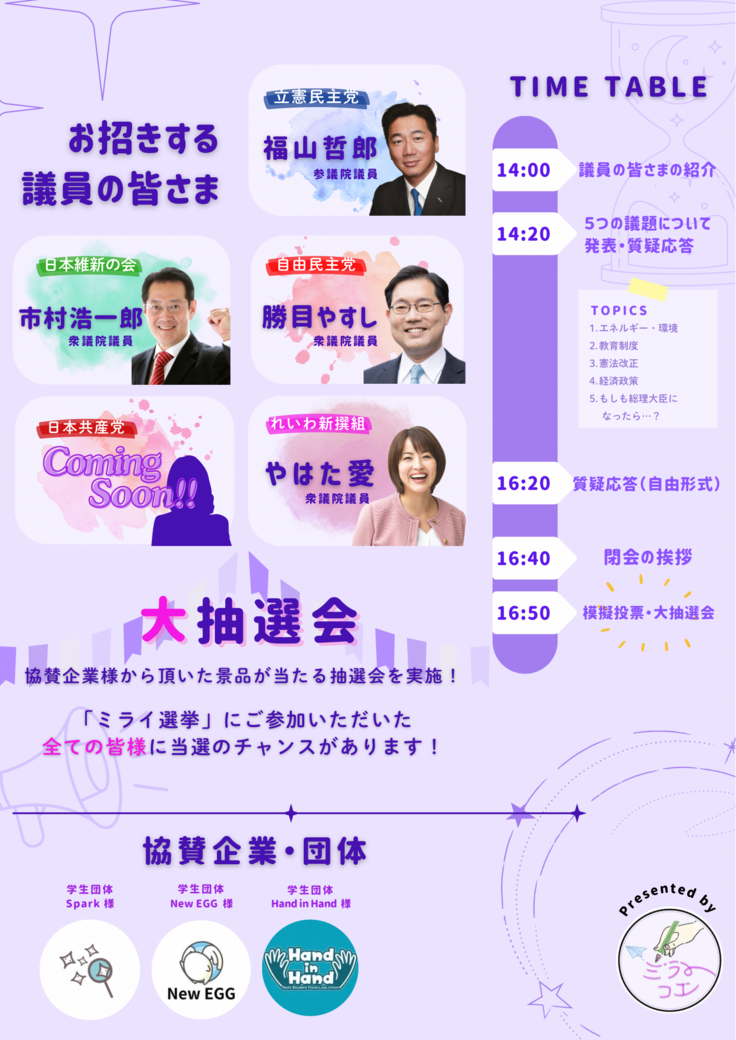 今回のミライ選挙は、若者をはじめ、幅広い世代の皆様にご参加いただけるイベントです。この活動報告をご覧いただいた皆様も、ぜひご参加いただければ幸いです。