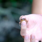 トカゲが苔の上を駆け回り、太ったカエルが岩の上で日光浴をしている横で、キャンパーたちがそれぞれ協力しながら、一歩一歩沢を上流に向かって進んでいきます。