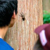 沢を登りきり辿りつくのは、深さも広さもある泳ぐのにぴったりな場所。飛び込みのできる大きな岩があり、上から深い水の底まで見ることができます。勇気をだして飛び込み水面に浮かび上がると、笑顔で息を吐き出す子どもたち。仲間のエールで決心し他の子達も深呼吸をすると、勇気を振り絞ってジャンプします。「一緒に飛ぼう!」「手をつなごうよ!」と、子どもたちが新しい挑戦に向かうとき、そんな会話があちこちから聞こえてきます。