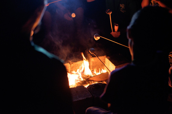 夜も更けてくると、キャンパーたちはすっかり満腹。新しくできたチームメイトと一緒に揺らめく炎の周りに仲良く座っています。炎が下火になり子どもたちの目もゆっくりウトウトし始め、暖かくくつろいだ気持ちのままキャンプ一日目が終了します。