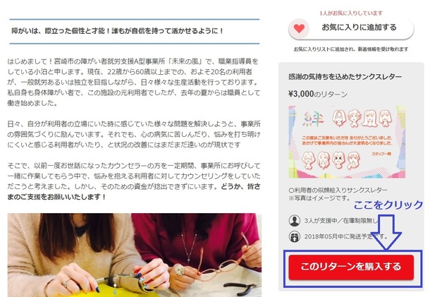 ①購入したいリターンの「このリターンを購入する」を選択します。