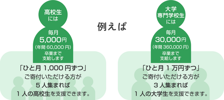高校生等対象 月額5,000円を卒業まで給付