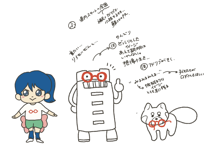 7月14日現在、ストーリーが固まり、キャラクターも出来上がり、9月の紙芝居完成に向けて取り組んでいるところです。