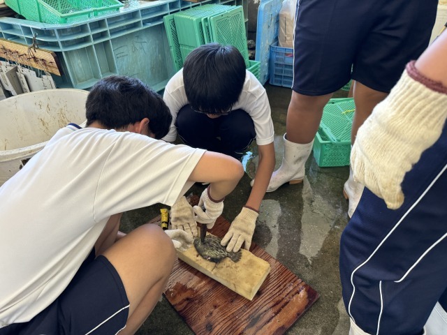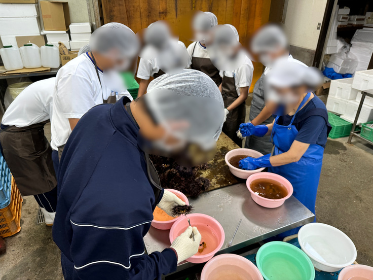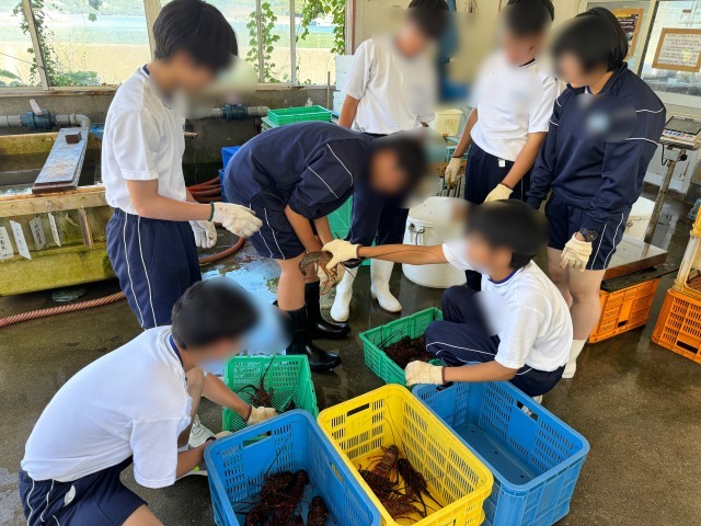 【三崎高校生来訪】赤ウニ割体験と伊勢海老選別などを体験してもらいました!