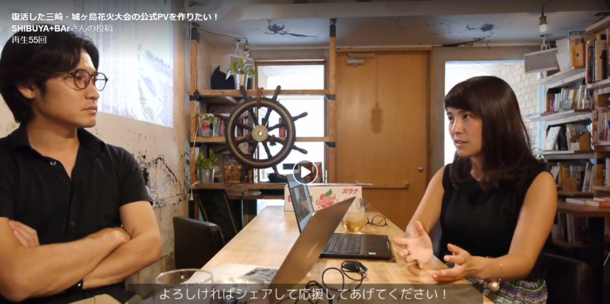 廻田彩夏自身のこと、「海の上に咲く花」を作った経緯、三崎とのご縁、三崎・城ヶ島花火大会のこと、このクラウドファンディングのこと、色々な話をさせて頂きました。