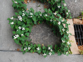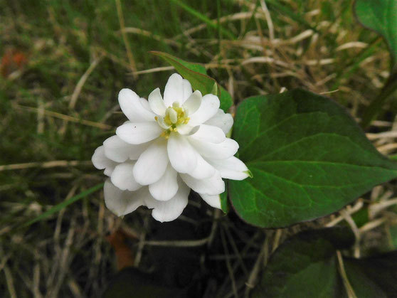 ゆのかの玄関わきに咲いたドクダミが、その名とはかけ離れた、美しく清らかな姿で、このたびの奇跡に「まる」のメッセージを寄せてくれました。ひとえに皆さんあってのことと八重のドクダミも咲いてくれました!(何のコッチャ⁉)