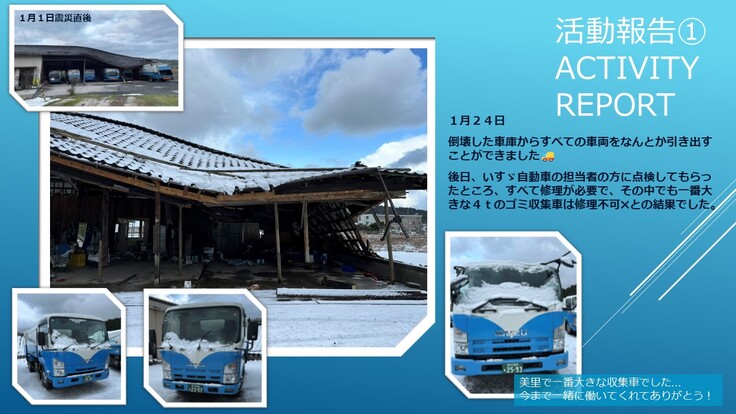 倒壊した車庫からすべての車両を引き出すことができました。