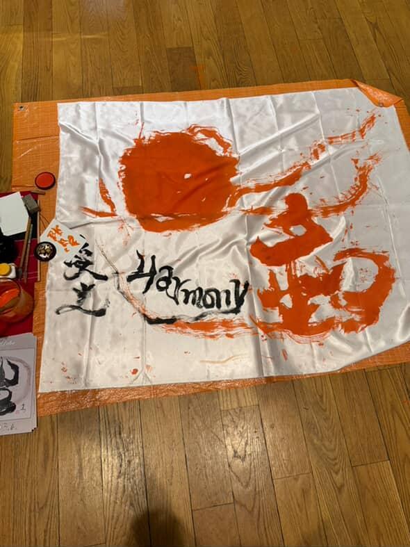 NYでの写真をプロジェクターで写しながらお話、和代さんの歌、真心写真家あっちくん&せつこさん獅子舞、okamonさんクリスタルボウル、書道ライブパフォーマンス、NY受賞作品展、限定書き下ろしアートメッセージ販売