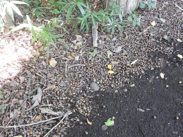 今年は、札幌ではミズナラの大豊作です。毎年どんぐりを拾っているところに行と、大量のどんぐりが落ちていました。久しぶりに遊びに来た6年生の孫とどんぐりを拾い、また、豊作のオニグルミも拾いました。