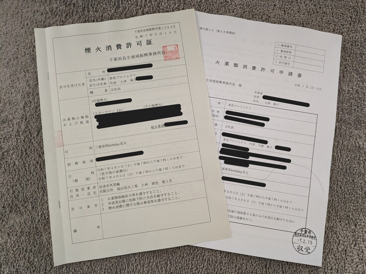 三浦春馬Birthday花火2025を打ち上げるために絶対必要な「煙火消費許可証」をいただきましたーーーーー!