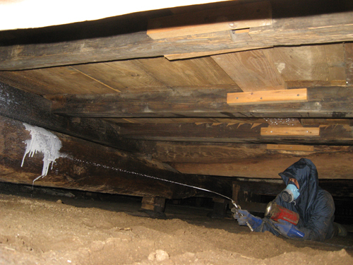 そのため、三浦館では5年に一度、主屋の土台・床下周りへシロアリ防除剤の散布を定期的に実施しています。