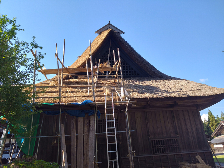 1つ目は、三浦館の象徴的な景色である「茅葺屋根の修理」です。